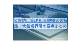 公害防止 公害防止管理者 大規模大気特論|大気境界層の要点まとめ こんにちは。「カロアの自分手帖」管理人のカロアです。この記事では、公害防止管理者(大気一種)の試験科目「大規模大気特論」で頻出のテーマ「大気境界層」について、苦手な方にもわかりやすくまとめています。私自身、このテーマはかなり苦手です…。勉強... 2025.09.13 公害防止🎓学ぶ